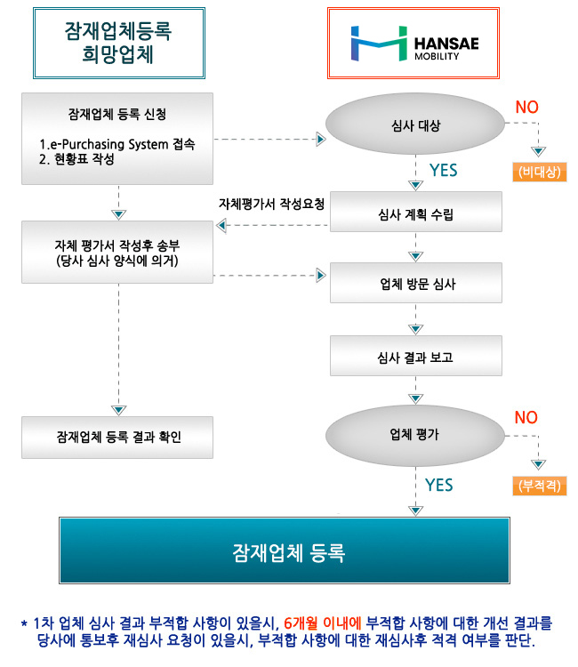 잠재업체 등록을 신청한 모든 회사가 심사대상업체로 선정되는 것이 아니라, 당사에서 우선